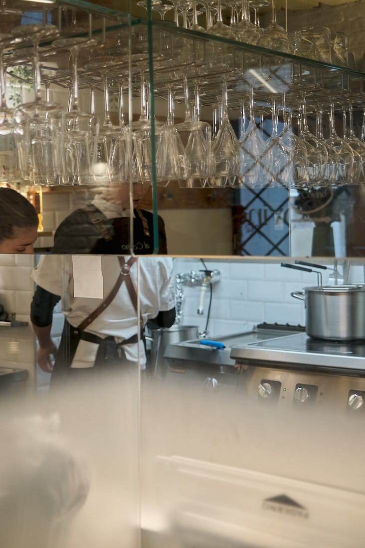 It is a precise idea, carried forward with care and professionalism, and a quiet sense of romance. The name of the restaurant often comes back to mind: Covino, something to be kept warm, protected, allowed to grow with patience. Even the space reflects this, with subtle egg-like shapes appearing here and there — not decorative, more instinctive.