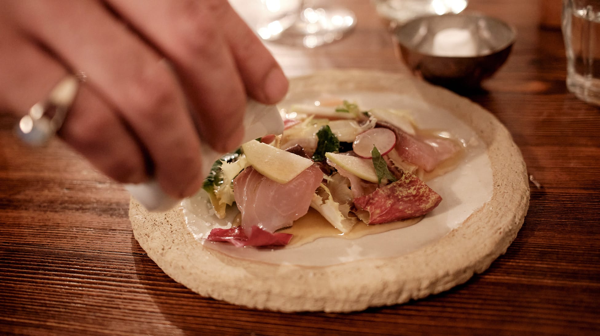 His cuisine grows from that encounter. It is precise and disciplined, shaped by technique, but also guided by curiosity and a very personal vision.