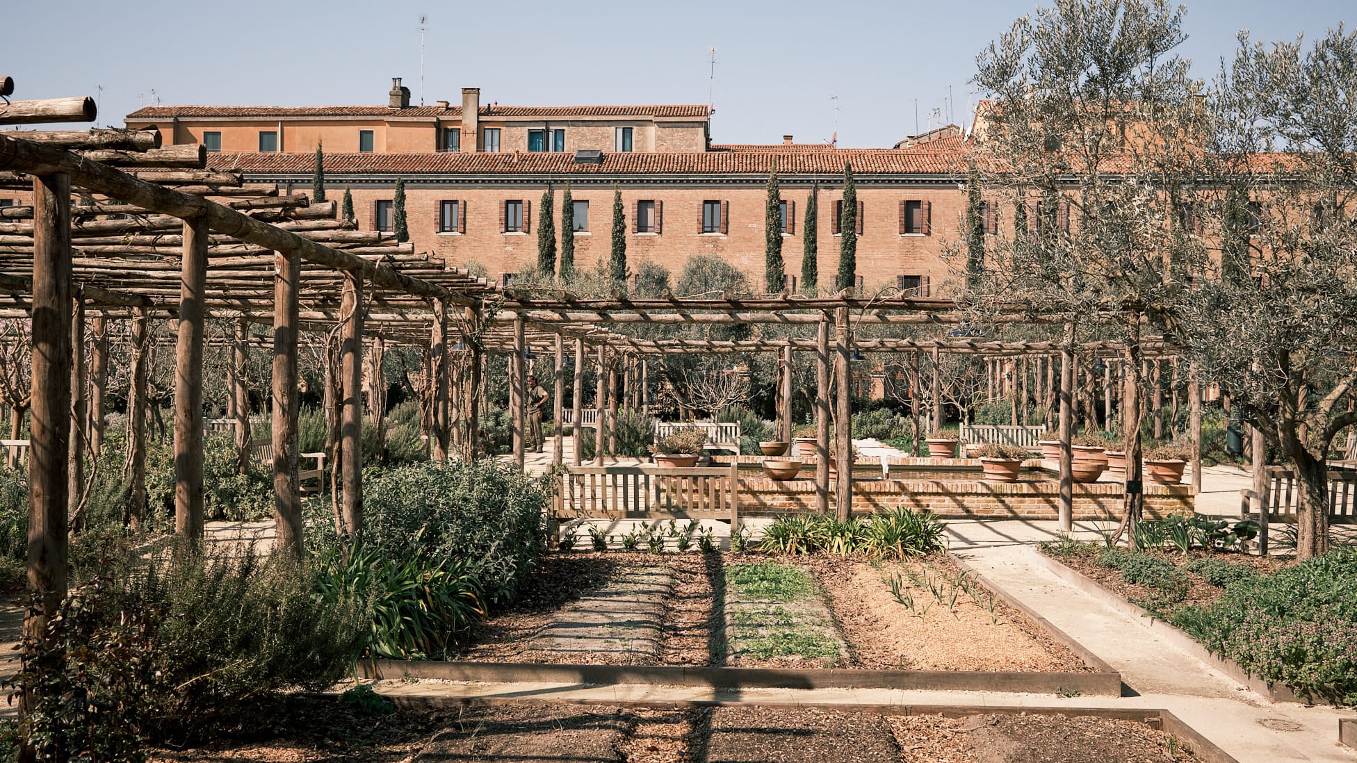The Orto Giardino del Santissimo Redentore sits behind a wall that kept it closed for centuries. Inside, the space opens wide. It is larger than expected, with long paths, cultivated beds, and a sense of order that feels natural, not designed to impress.